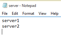 Create a text file that contains server information like below. Don’t make any spaces in the file.