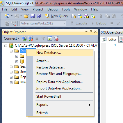 So to connect right click on registered server and new query so that it is connect to server and shown in the right window