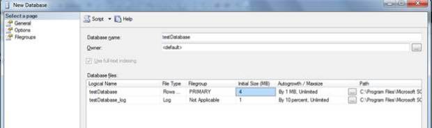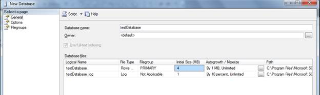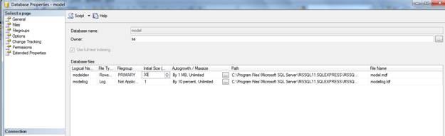 As the new Database creation is done from Model DB template, go to model DB, then give initial size as below