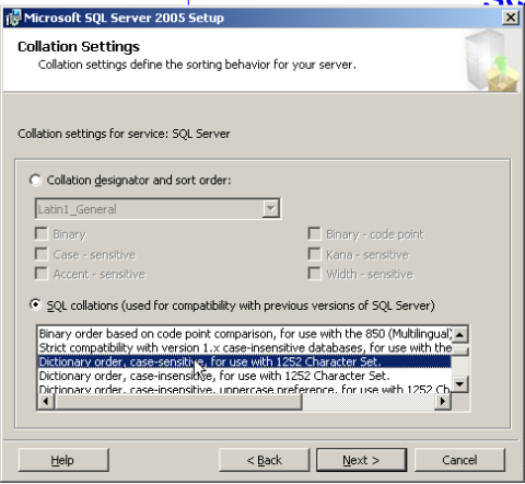 Click on next, we have collation settings windows, using this we can give the case sensitivity and ascending /descending order