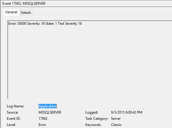 Ex : EXEC master.dbo.xp_logevent 60000, ‘Test message’, informational