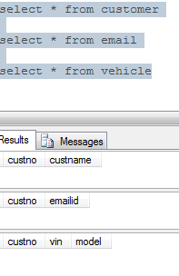 create table vehicle(custno int,vin char(5) not null,model char(3))