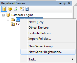 In ssms(sql server 2005) for registration of servers, go to view and registered servers you got window like below