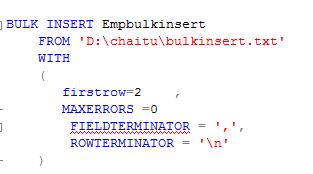 Bulk Insert command Explaination for loading data from text or csv file in to Sql Server