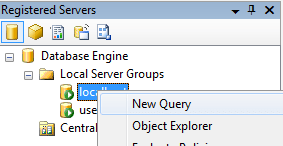 So to connect right click on registered server and new query so that it is connect to server and shown in the right window